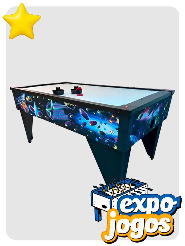 Mesa de Air Game com placar eletrônico e LEDs, pensada para entregar um visual marcante, partidas dinâmicas e alto impacto em eventos corporativos e ativações de marca.